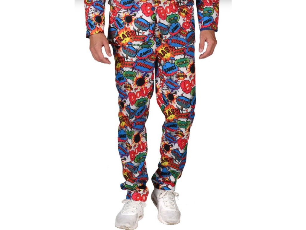 Výrazné, hravé a nepřehlédnutelné. Pop Art kalhoty jsou ideálním základem kostýmu inspirovaného světem komiksu, Andyho Warhola a barevné popkultury.