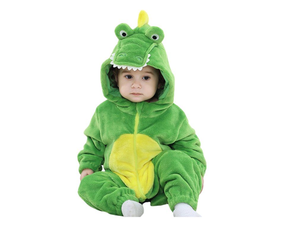 Roztomilý dětský kostým krokodýla v podobě měkkého overalu, který si zamilují děti i rodiče.