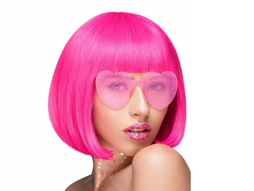 Obsahuje 1x růžová paruka, 1x srdcové brýle, 1x síťka pod paruku - OUTLET, ROZBALENÝ, BEZ VAD