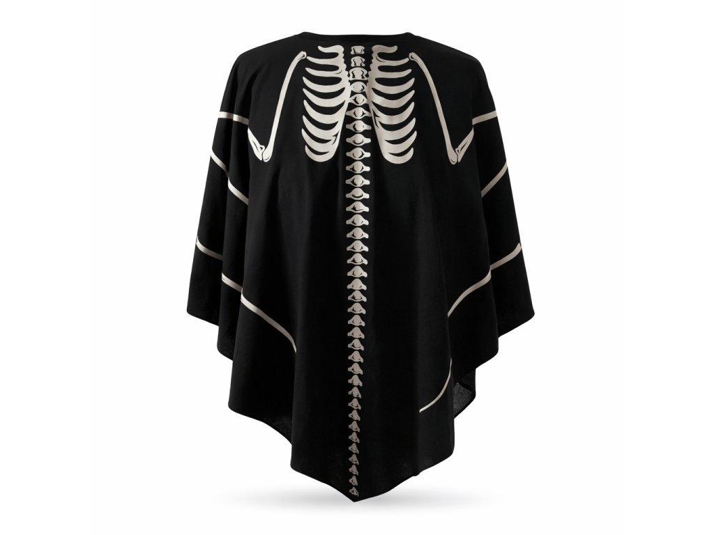 Originální černé pončo s výrazným potiskem kostry je perfektní volbou pro rychlý a efektní kostým.